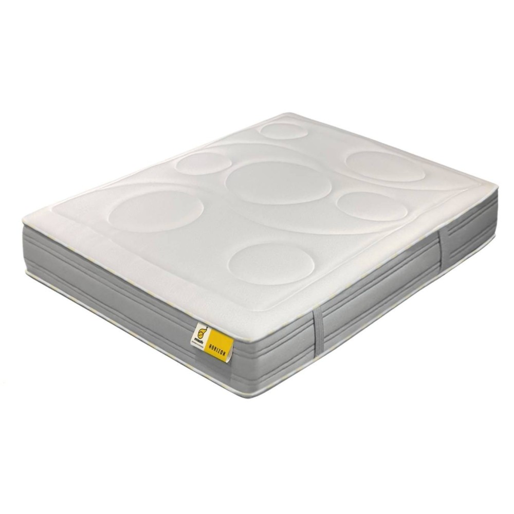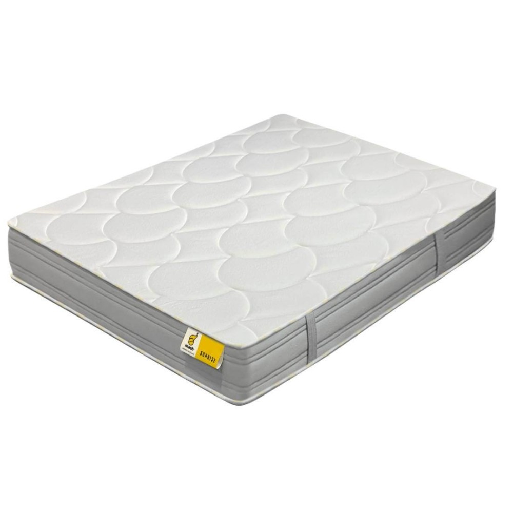 Colchón Mash (Grupo Flex) con bloque de espumación HR de alta densidad y acogida viscoelástica, ofrece un extra de firmeza y gran resistencia a la vez que mantenemos el confort. Altura: 27 (+/- 1 cm). Firmeza: Adaptable.